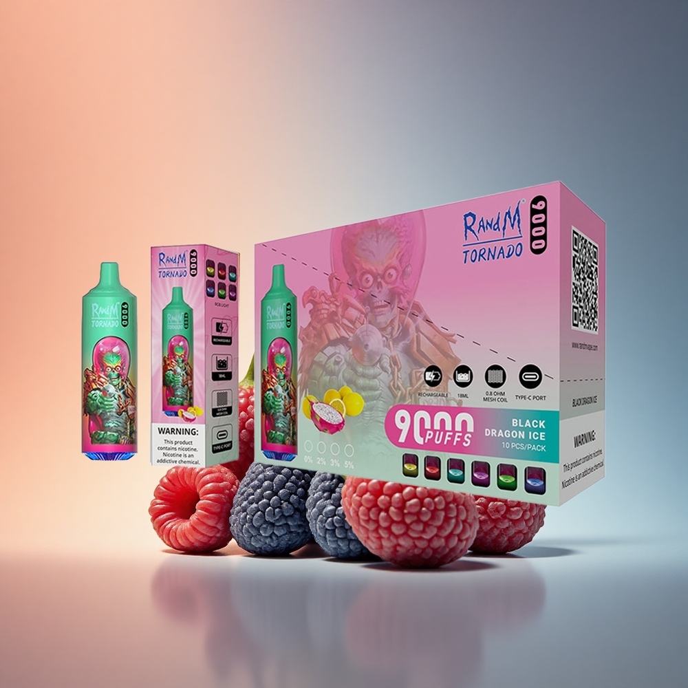 RandM Fumot Tornado 9000 Puffs Kék Málnás Kush Mesh Tekercs 850 mAh